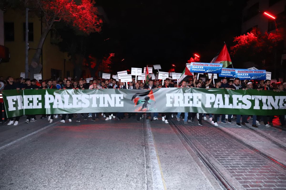 Katılımcılar, Gazze'de yaşanan insanlık dramına dikkat çekmek için sessiz bir şekilde yürüyüşlerini sürdürdü.