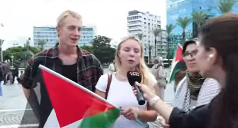 İzmir Gündoğdu Meydanı'ndaki gösteride CNN TÜRK Muhabiri Merve Tokaz'ın mikrofon uzattığı Polonyalı genç bir kadın ve erkek ise anlamlı açıklamalarda bulundu. Genç kadın, "Gazze'deki insanlar için kendimizi göstermek amacıyla buradayız. Destek olmak için Polonya'dan buraya geldik. Daha doğrusu buradaydık ve desteğimizi göstermek adına buradayız. Bu insan olmakla ilgili." ifadelerini kullanırken beraberindeki erkek ise "İsrail'in yaptıklarını asla desteklemiyoruz. İnsanlara destek olmak için buradayız. Bunlara kayıtsız kalamayız elbette." dedi.