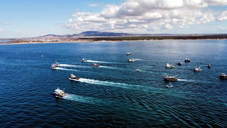 EDİRNE’nin Saros Körfezi'ne kıyısı bulunan Enez ilçesinde, yardım götürmek üzere yola çıktıkları Gazze yolunda İsrail’in saldırısına uğrayan Sumud Filosu’na destek amaçlı 60 tekne ve bot, denize açılarak Filistin bayraklarıyla tur attı.