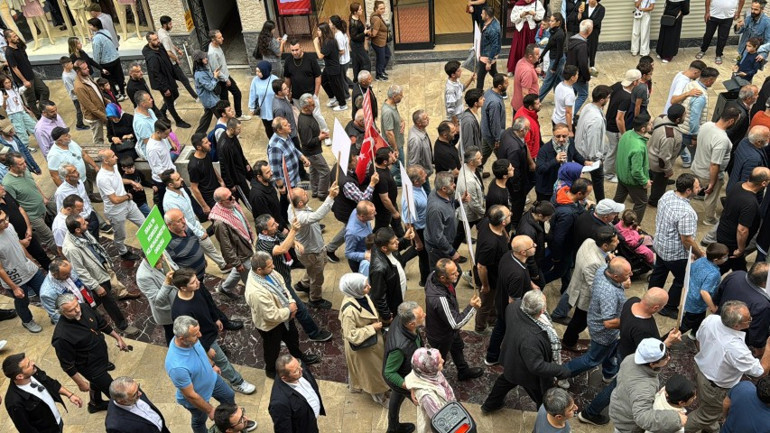 Cedidiye Meydanı'nda gerçekleştirilen büyük Filistin mitinginde İsrail’in hain saldırıları protesto edildi. Meydandaki mitingin ardından kalabalık grup İstanbul Caddesi üzerinden Anıtpark’a kadar yürüyerek sloganlar attı. İşletme çalışanları da yürüyüşe alkışlarla destek verdi.