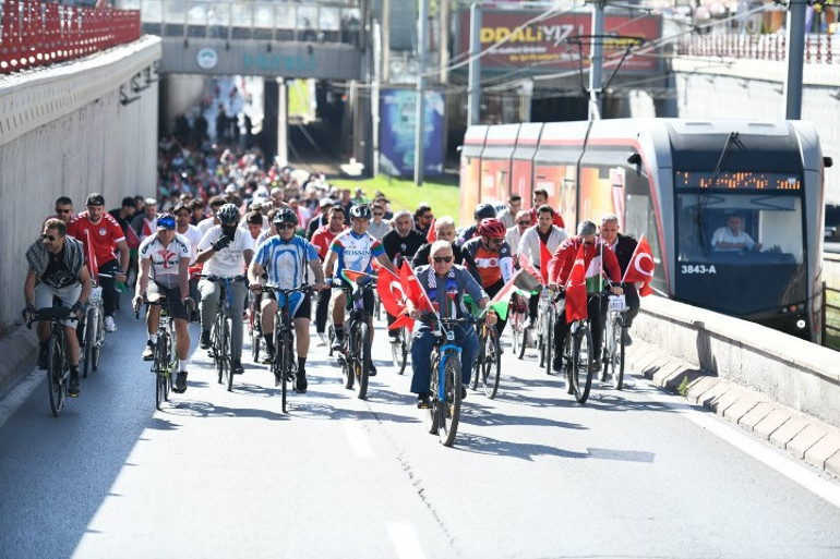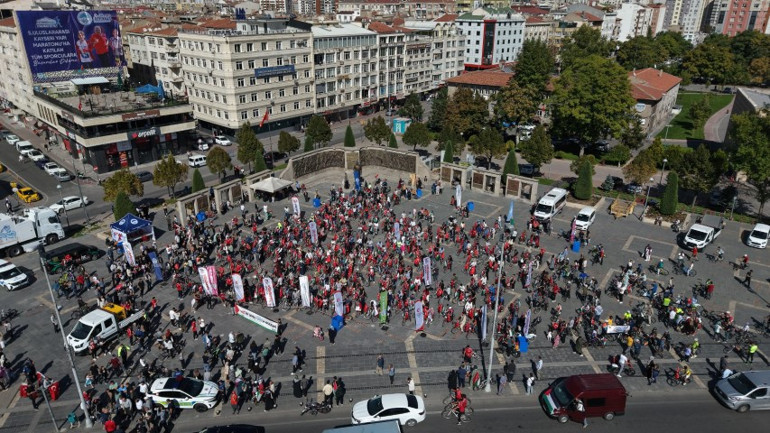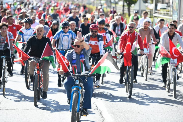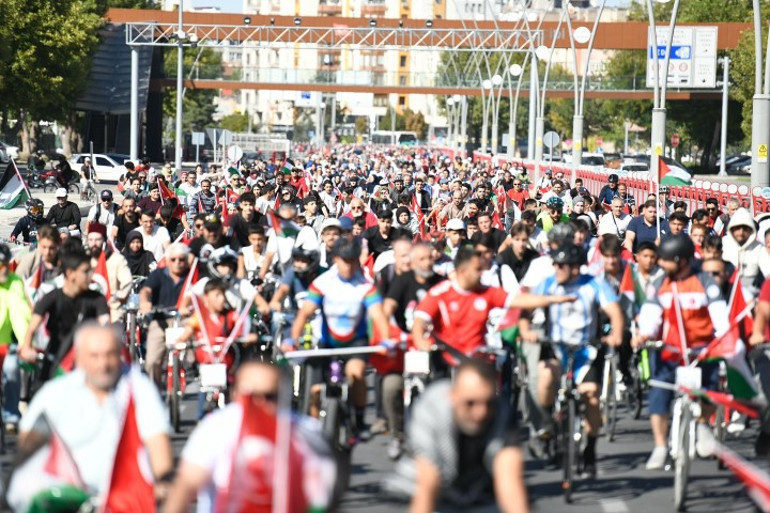 Cumhuriyet Meydanı’ndan başlayan "Kayseri’den Filistin’e Küresel Sumud Filosu’na Destek" bisiklet turu, Recep Tayyip Erdoğan Millet Bahçesi Esenyurt Kapı’da tamamlanırken etkinliğe gencinden yaşlısına çok sayıda vatandaş katılarak Küresel Sumud Filosu’na ve Filistin’e destek mesajı verdi.