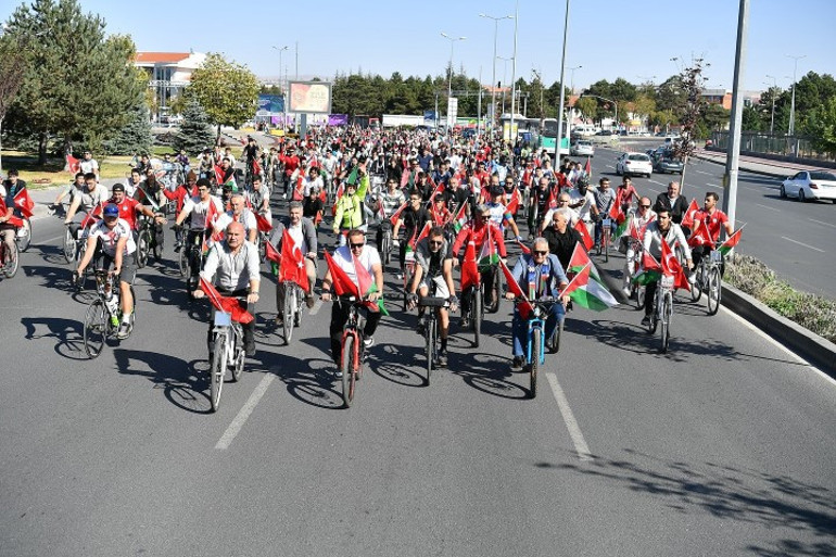 FİLİSTİN'E DESTEK İÇİN PEDAL ÇEVİRDİLER