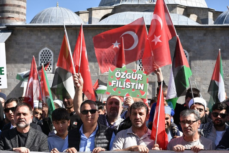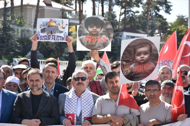 Ankara Filistin Dayanışma Platformuna (ANFİDAP) mensup sivil toplum kuruluşu üyeleri ile yaşlılar, gençler ve çocukların da aralarında olduğu binlerce kişi, Gazze'de yaşanan soykırıma dikkati çekmek ve İsrail'e tepkilerini yükseltmek için Melike Hatun Camisi önünde toplandı.